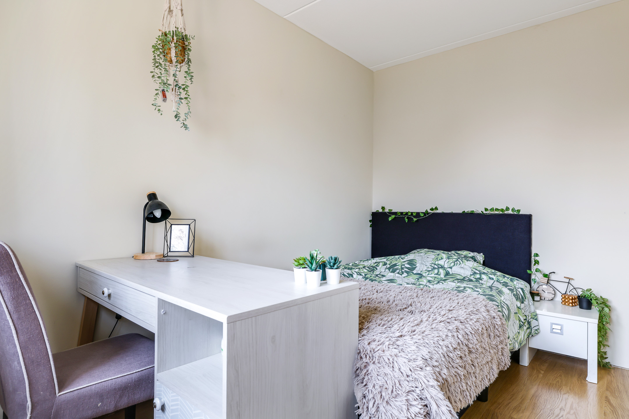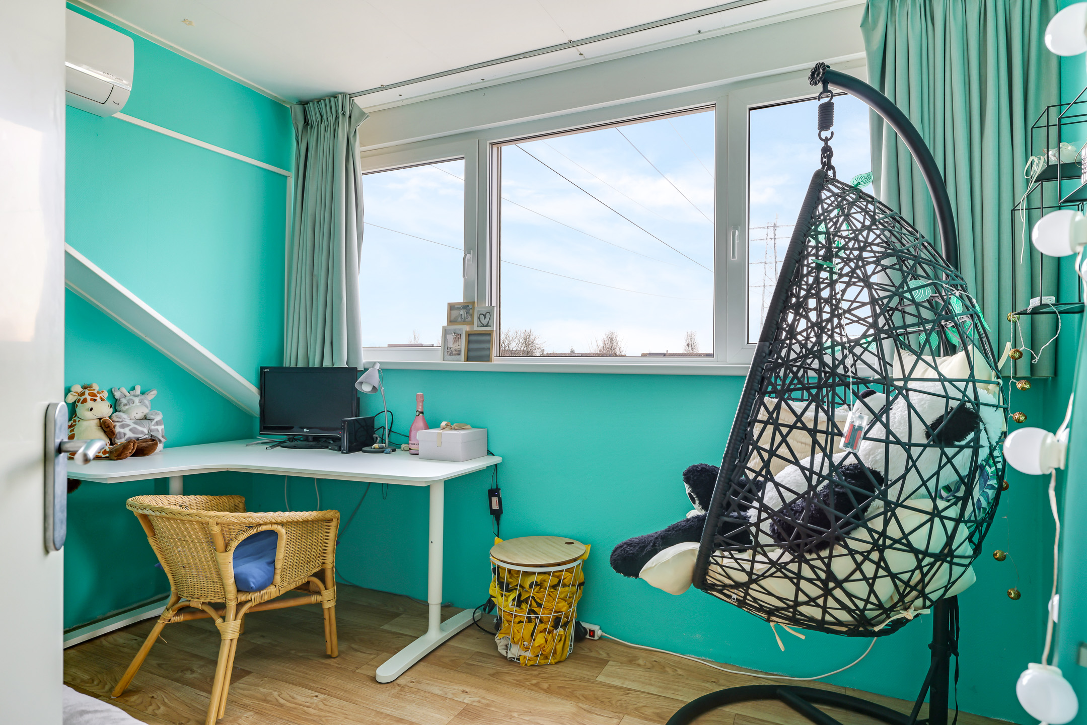 De bovenste woonlaag verrast misschien wel het meeste omdat er nog flink wat leefruimte te vinden is. Dit komt mede doordat er aan zowel de voor- als achterzijde een dakkapel is geplaatst. Van oorsprong betrof het één open ruimte, maar in de huidige setting vindt je er een ruime, 4e slaapkamer én een separate washoek. En ook de voorzolder biedt nog de nodige (opberg)ruimte. De slaapkamer heeft de grootste dakkapel waardoor elke tiener deze kamer graag zou willen claimen. Een rolluik zorgt er ook hier voor dat de kamer volledig te verduisteren is. En mocht het in de zomer echt te warm worden, dan zet je gewoon de airconditioning aan.