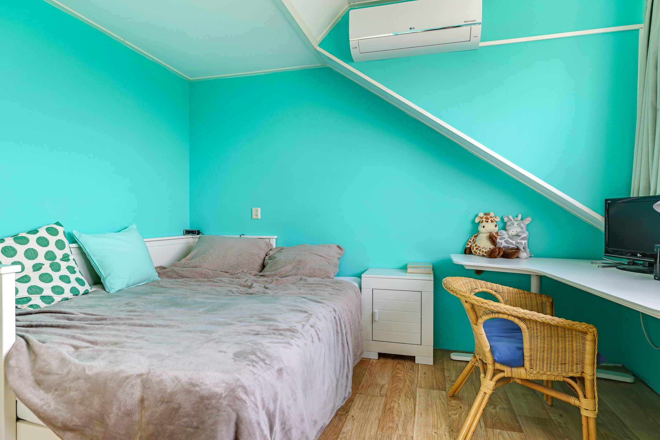 Slaapkamer 4 met brede dakkapel (achterzijde), rolluik en airco