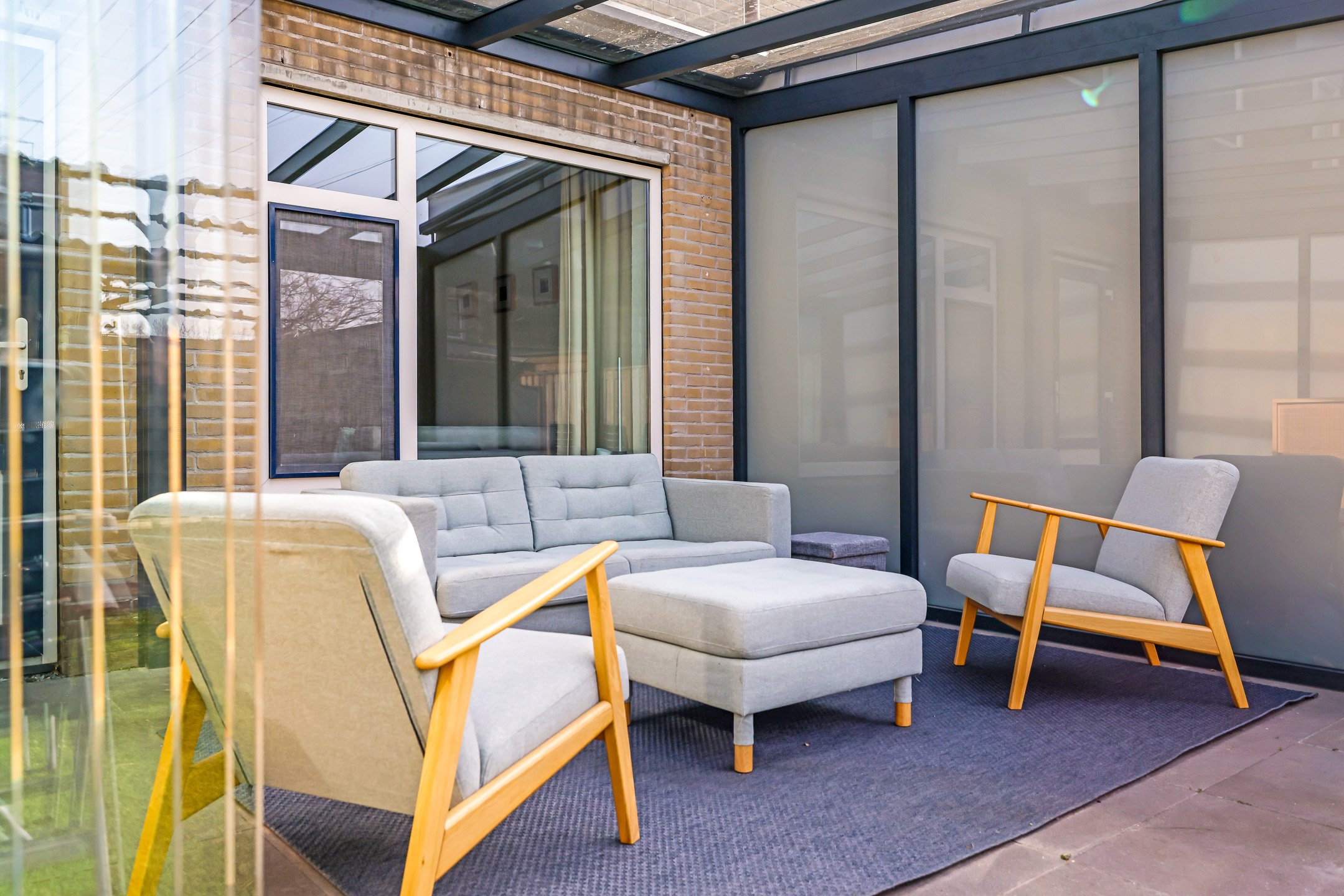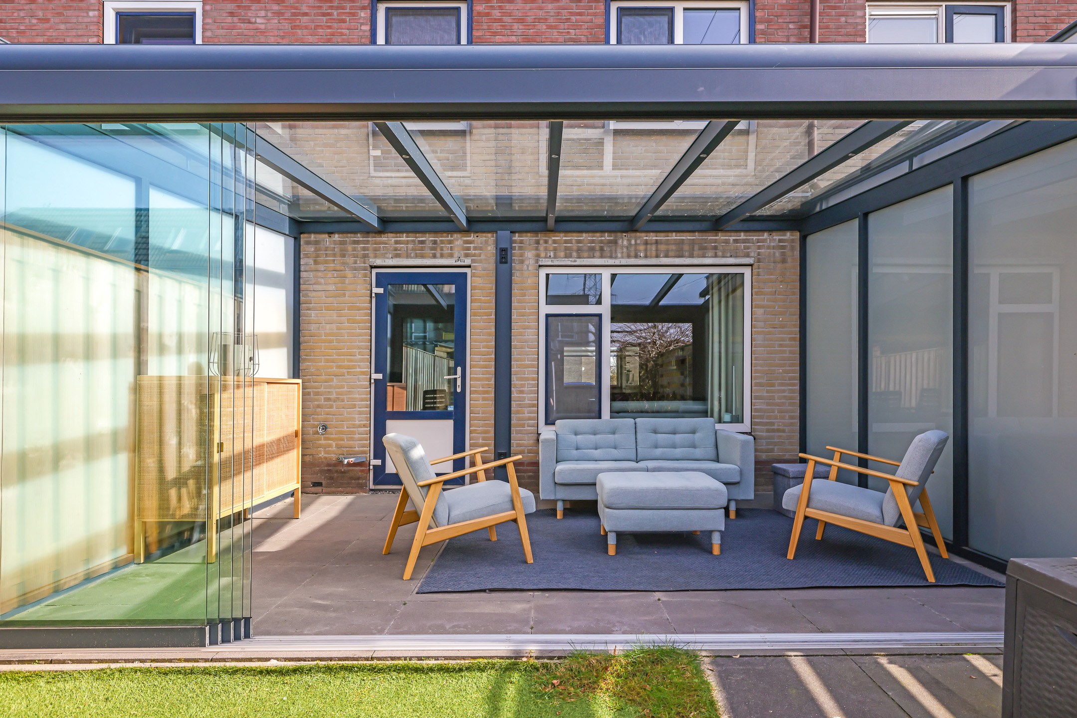 Luxe tuinkamer met veel glas en zonwering aangebouwd