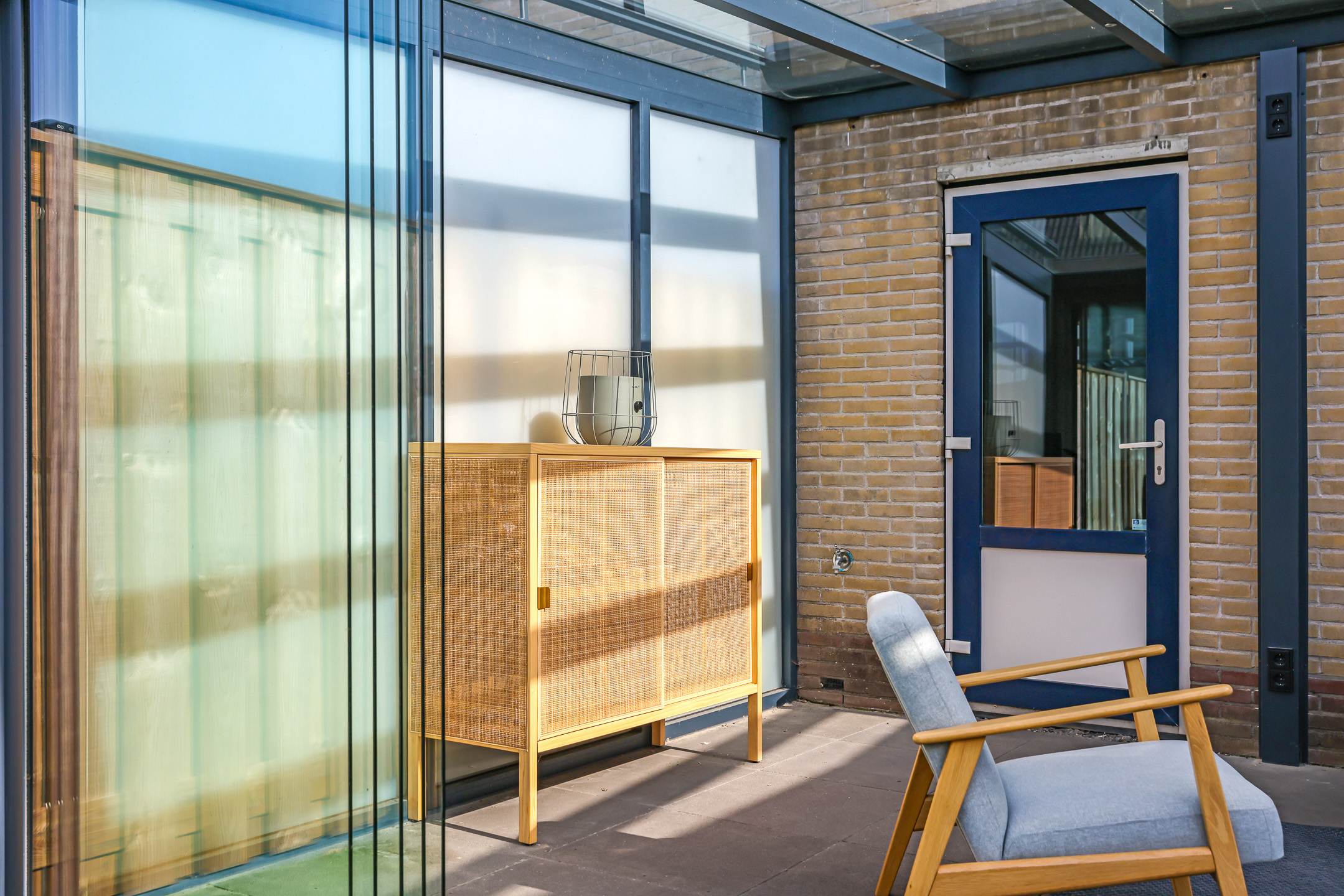 In het voor- en najaar is het heerlijk om bij een zonnetje lekker achter het glas ‘buiten’ te kunnen zitten. Maar in de zomer kan het er flink warm worden. Om die reden is er ook zonwering aangebracht. Zonwering schuift (elektrisch) boven het dak langs, terwijl de glazen schuifpanelen zijn voorzien van een screen. Deze is eveneens elektrisch te bedienen. Kortom, alleen deze tuinkamer is al een bezichtiging waard!